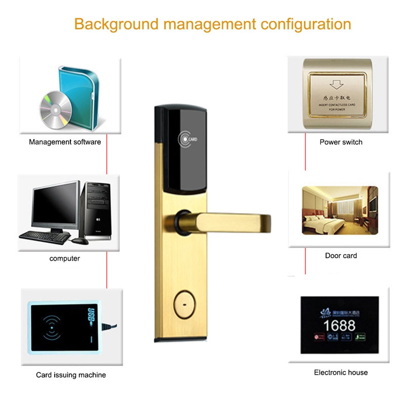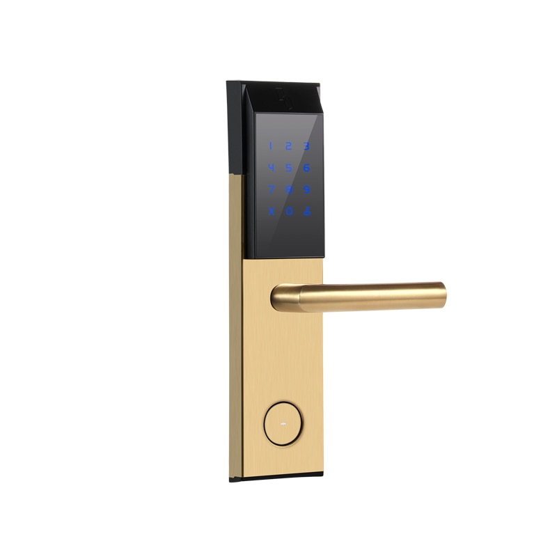 Be the first to review “Golden Color Stainless Steel Intelligent Door Lock Hot Sale Digital Smart Door Lock RFID Card Hotel Door for wooden door lock”